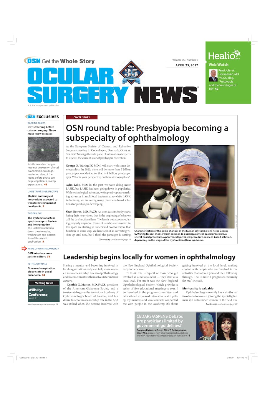 Dr. Waring featured on the Cover of Ocular Surgery News discussing Vision Correction for each Stage of Life