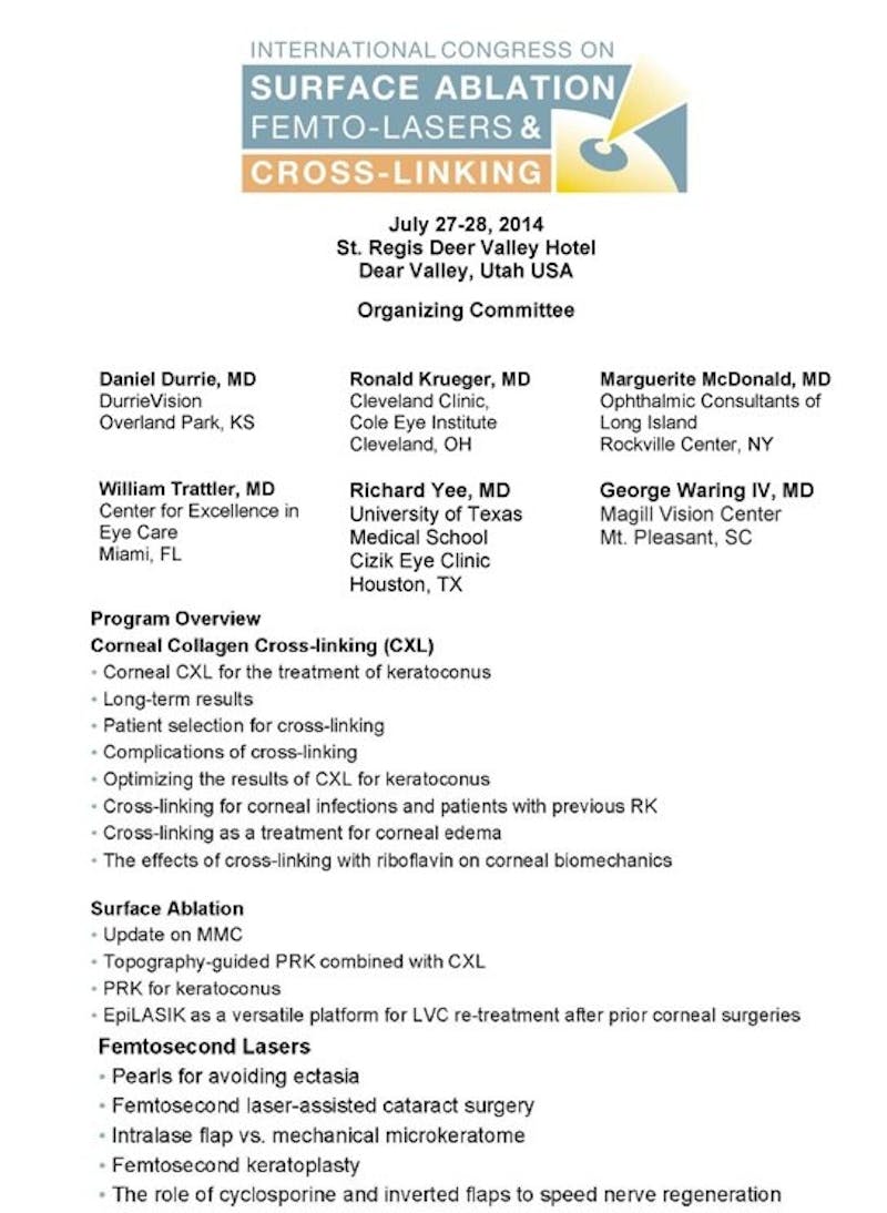 Dr. George O. Waring IV, MD FACS will serve on the Organizing Committee for the 2014 International Congress on Surface Ablation Femto-Lasers & Cross-Linking Meeting